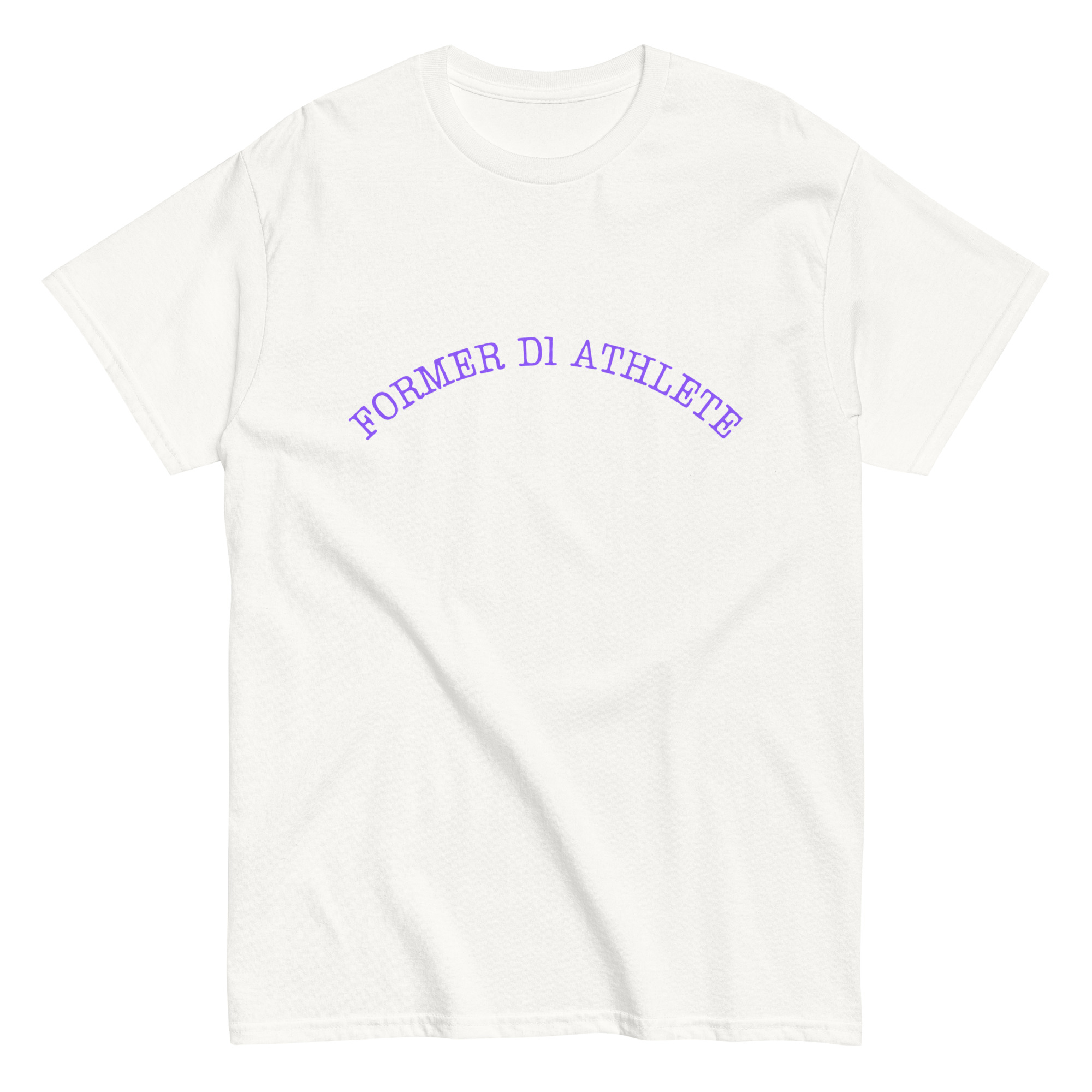 Men’s classic tee Former-D1-Athlete-(Type)-Half-Line-in-Purple-Letters